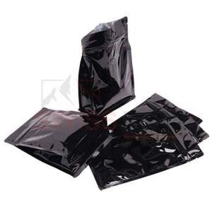 3. Shiny Black Flat Bottom Pouches With Normal Zipper & Valve