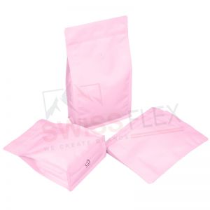 2. Fresh Pink Recyclable Flat Bottom Pouch With normal zipper and valve